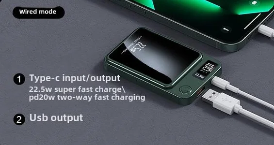 باور بانك 22.5W – شحن سريع + شاشة رقمية + شحن لاسلكي